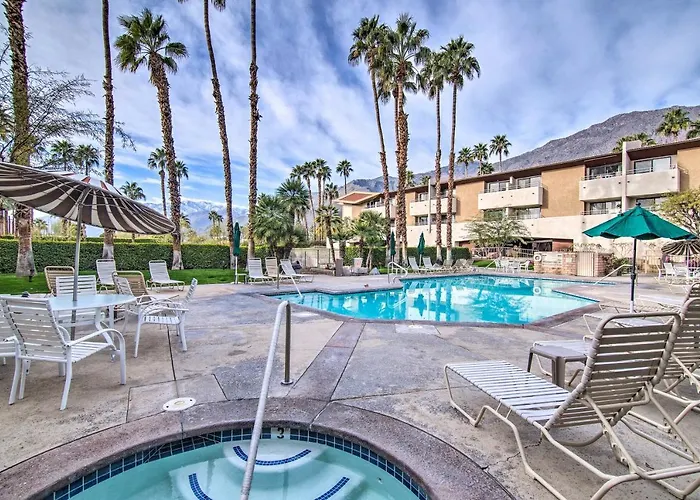 El Chic Palm Springs Resort Condo With 2 Balconies ofrece vistas a las montañas y está tranquila ubicado a aproximadamente 25 minutos andando del Jardín Botánico Moorten y Cactarium. Los huéspedes de este apartamento de 53 m² pueden disfrutar del lujo añadido de un salón de spa, lo que mejora aún más su estancia.